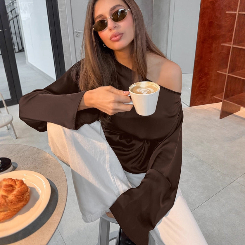 American Vintage Waist-cinching Irregular Slim-fit Long-sleeve Top For Women