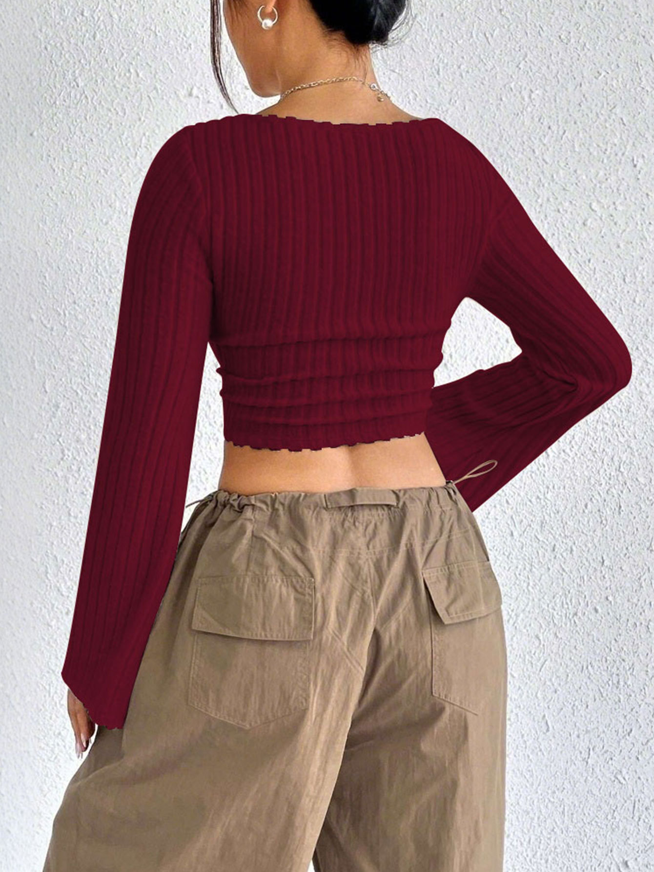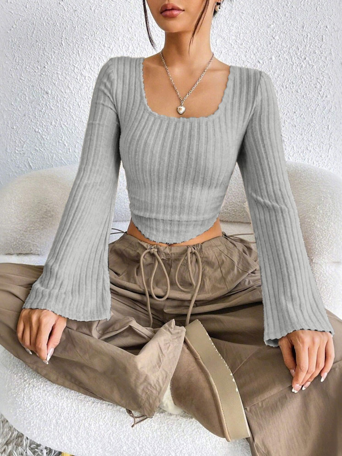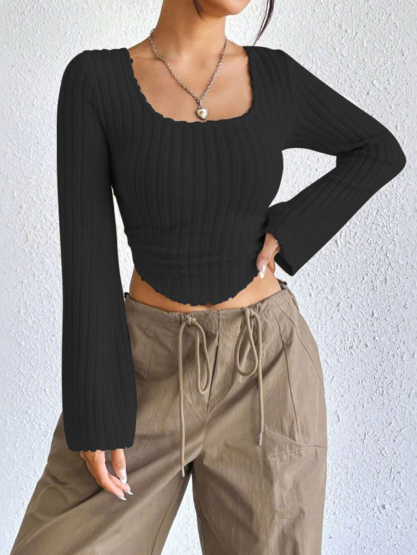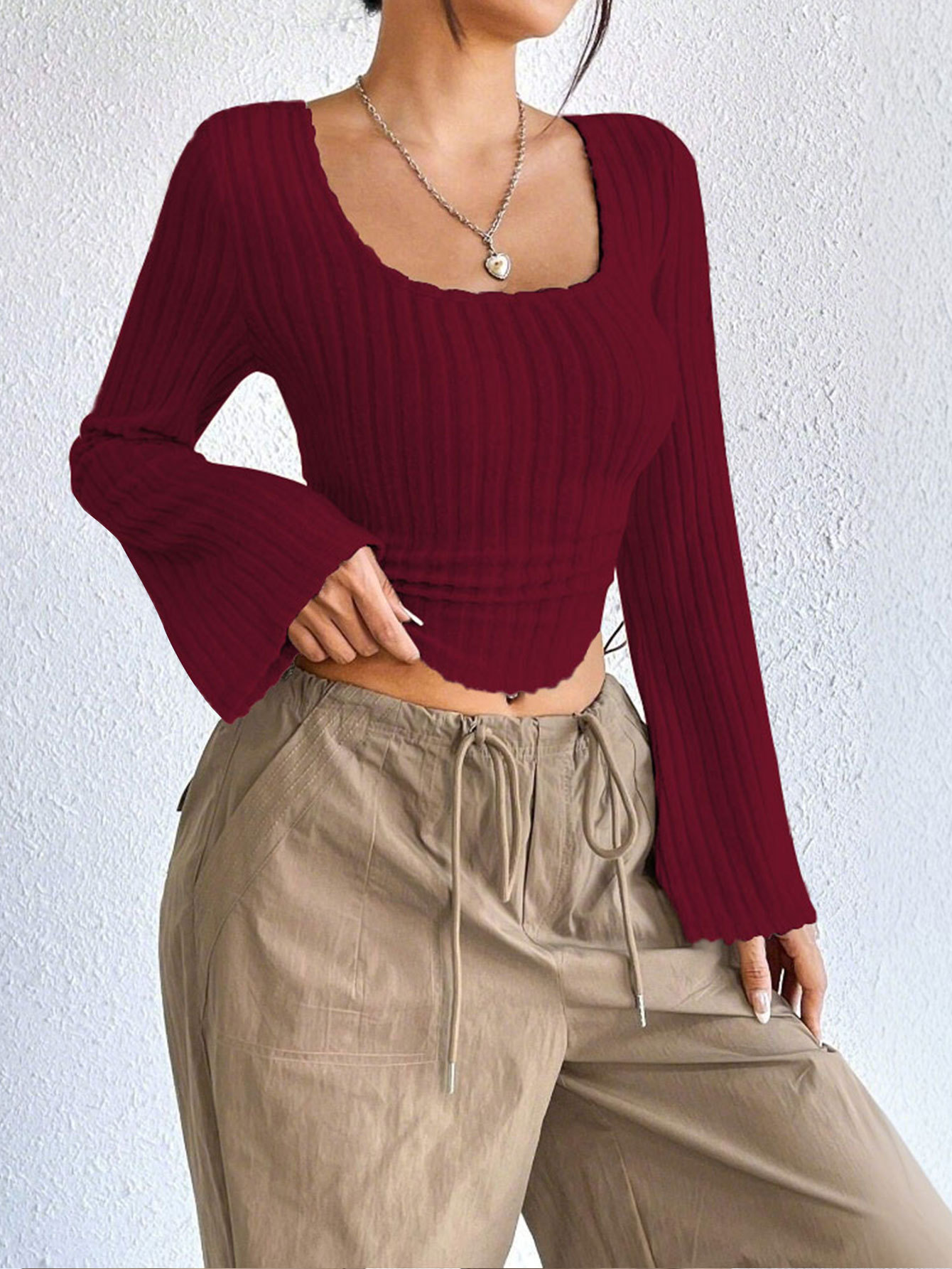 Autumn And Winter New Women's Fashion Elegant Style T-shirt Square Neck Bell Long Sleeve Top