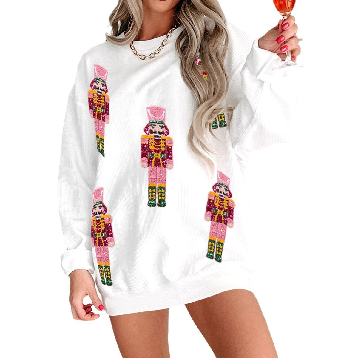 Autumn And Winter Sequin Embroidery Anime Round Neck Long Sleeve Loose Sweatshirt