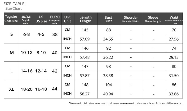 Note: 1. Asian sizes are 1 to 2 sizes smaller than European and American people. Choose the larger size if your size between two sizes. Please allow 2-3cm differences due to manual measurement. 2. Please check the size chart carefully before you buy the item, if you don't know how to choose size, please contact our customer service. 3.As you know, the different computers display colors differently, the color of the actual item may vary slightly from the following images.Packing list: