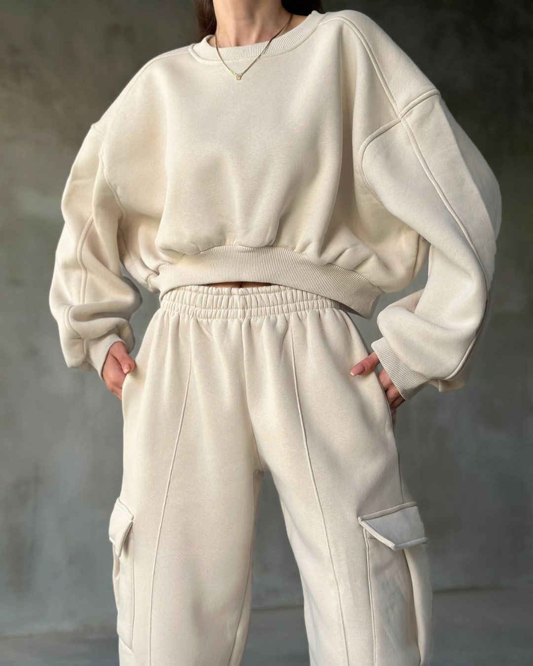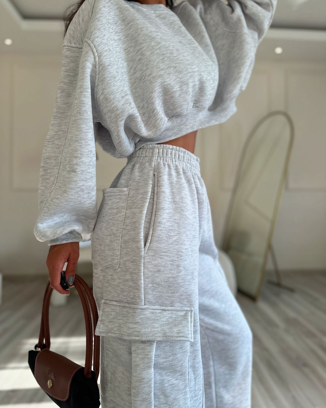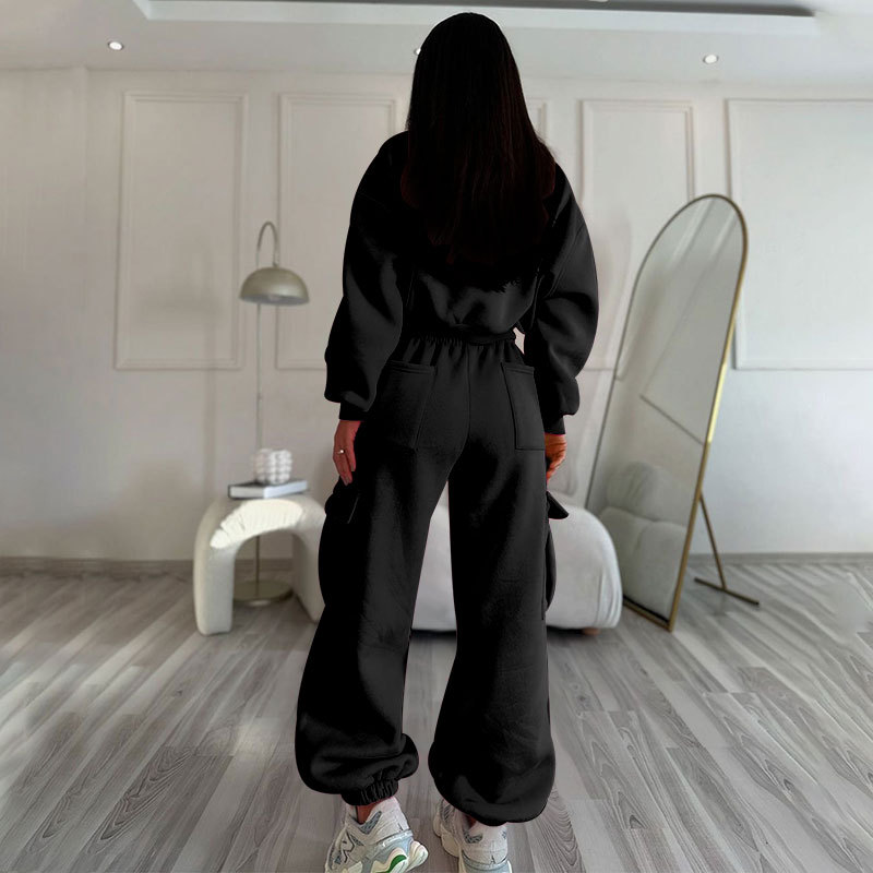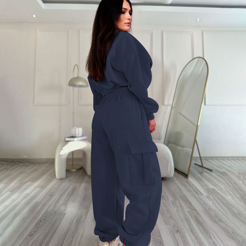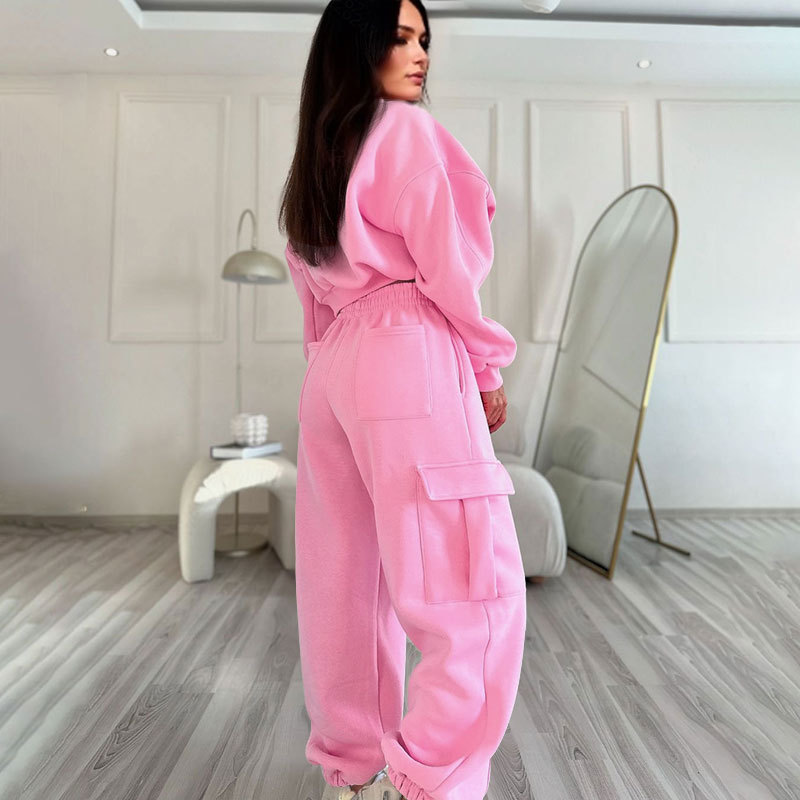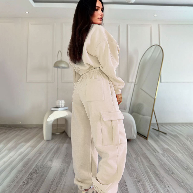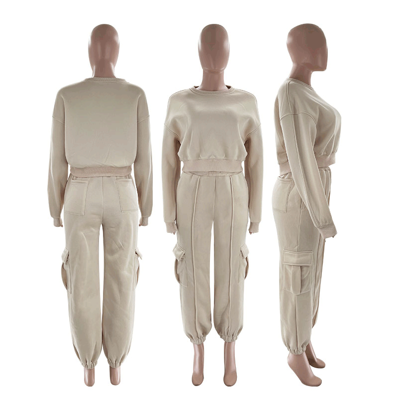 European And American Autumn New Round Neck High Waist Sweater Pocket Loose Sweatpants Suit