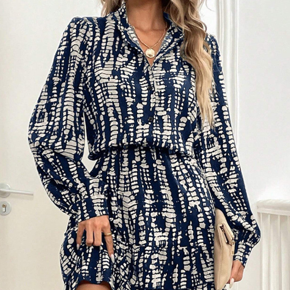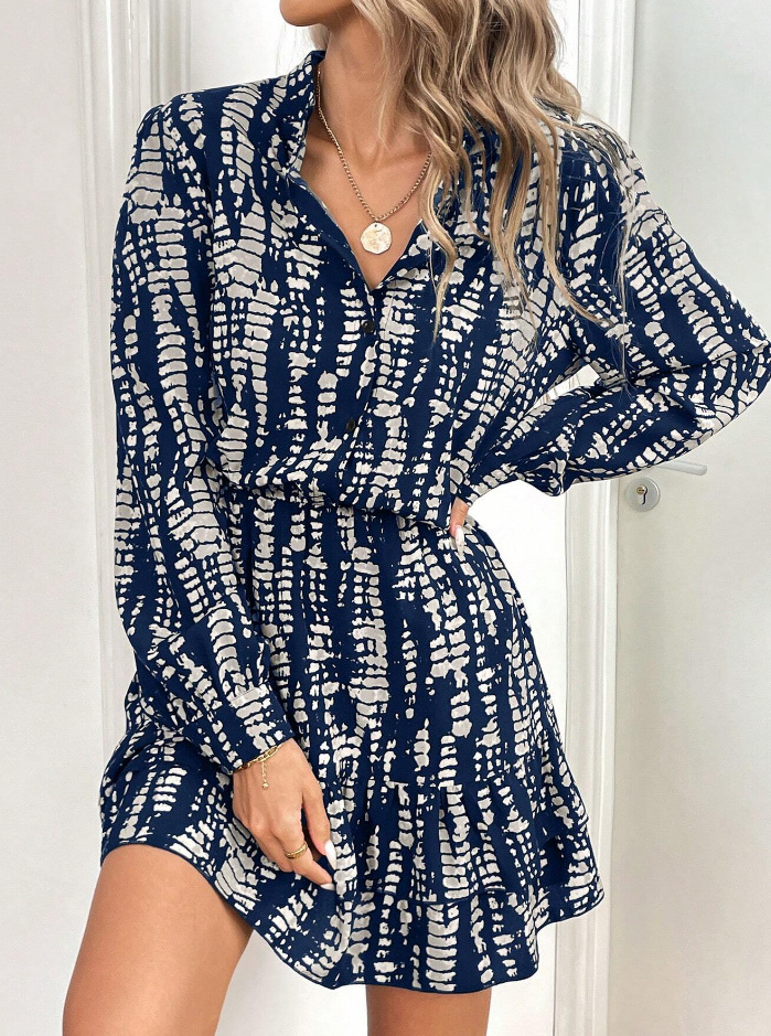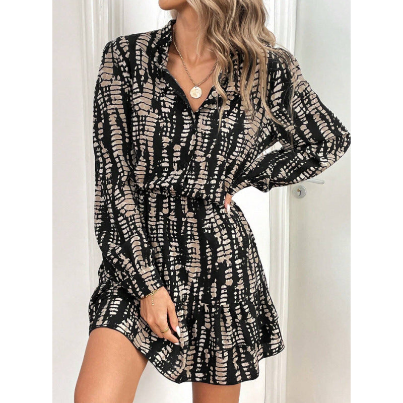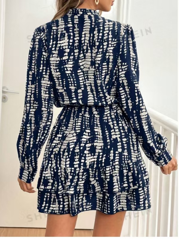 Fashion Printed Ruffled Long Sleeve Dress Women