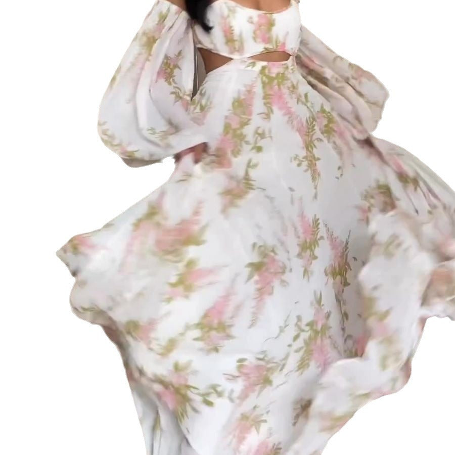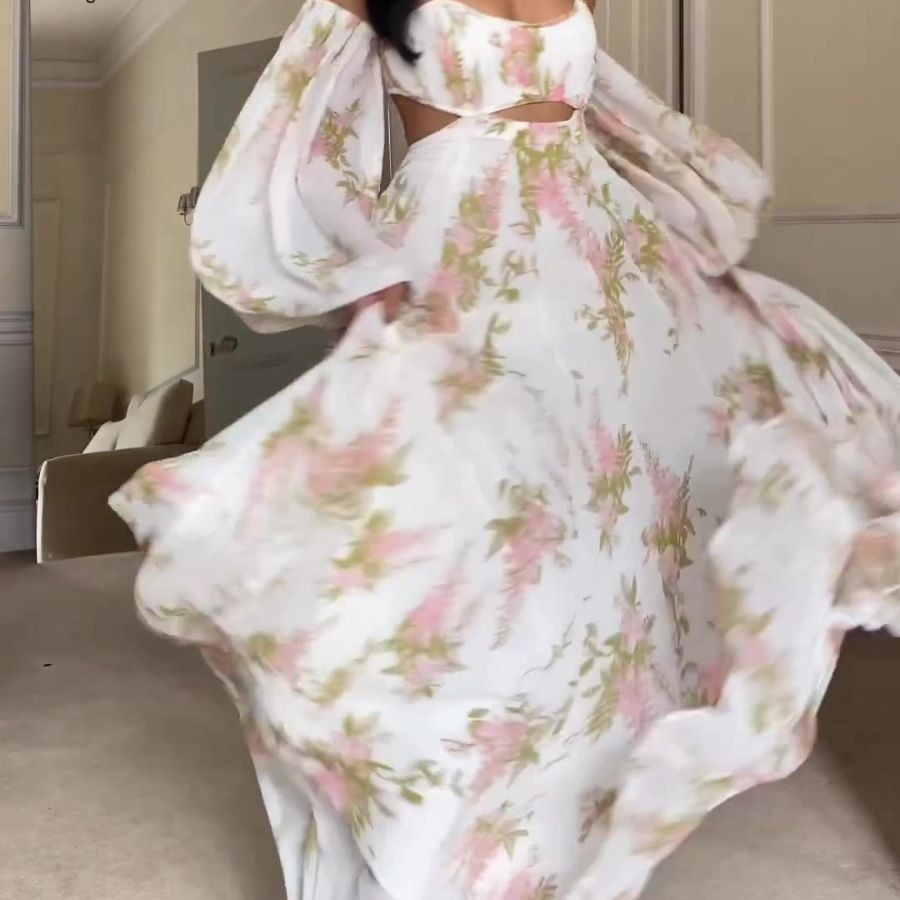 French Printing Home Sexy Backless Spaghetti Straps Dress