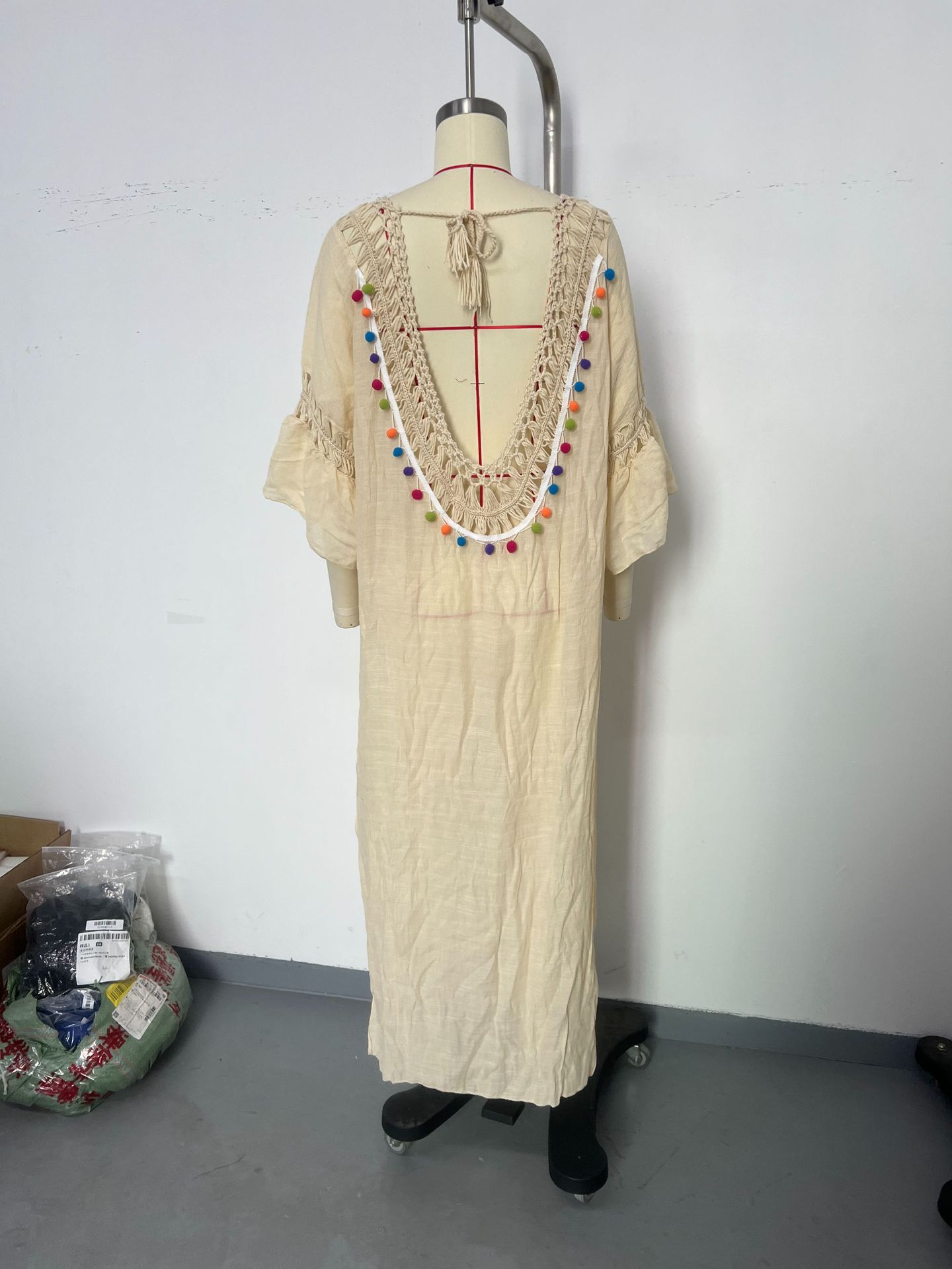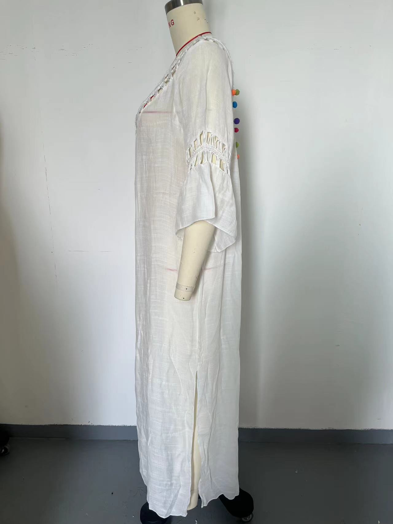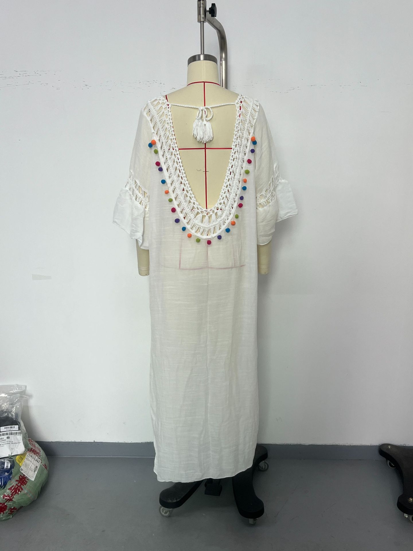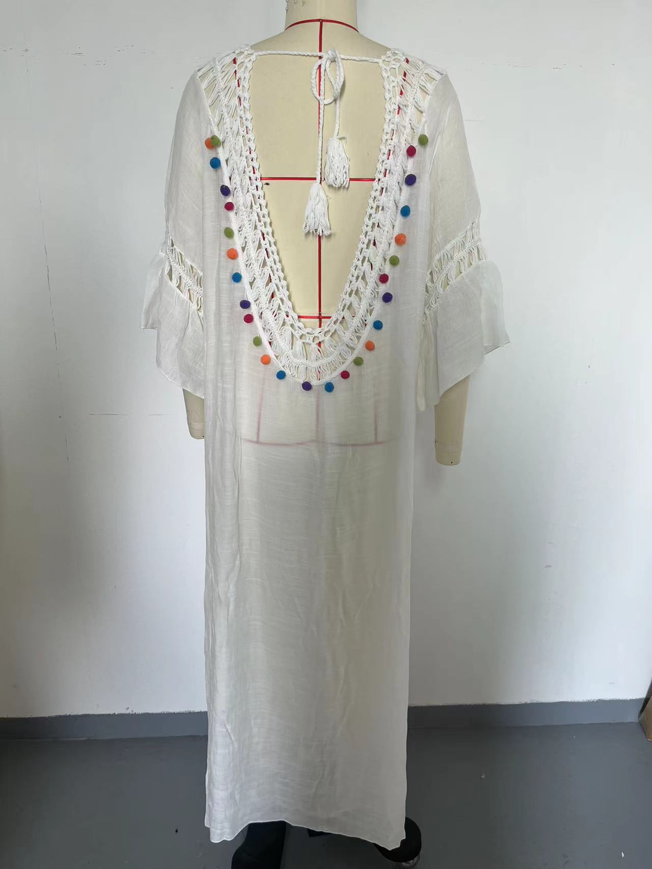 Hand Crocheting Stitching Colorful Ball Hollow Backless Loose Beach Overskirt
