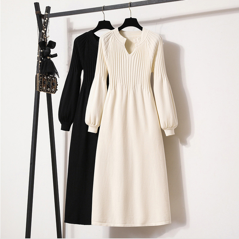 Loose Western Style Versatile Below The Knee Long Style Long Sleeve Dress