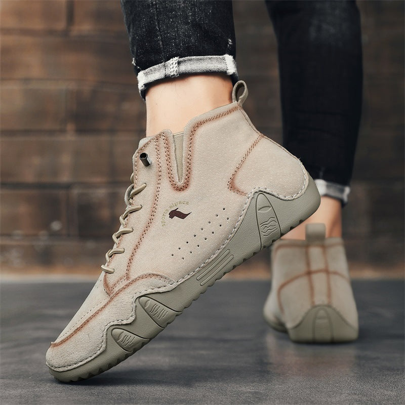 Men's Simple Printed Genuine Leather Working Wear Ankle Boots