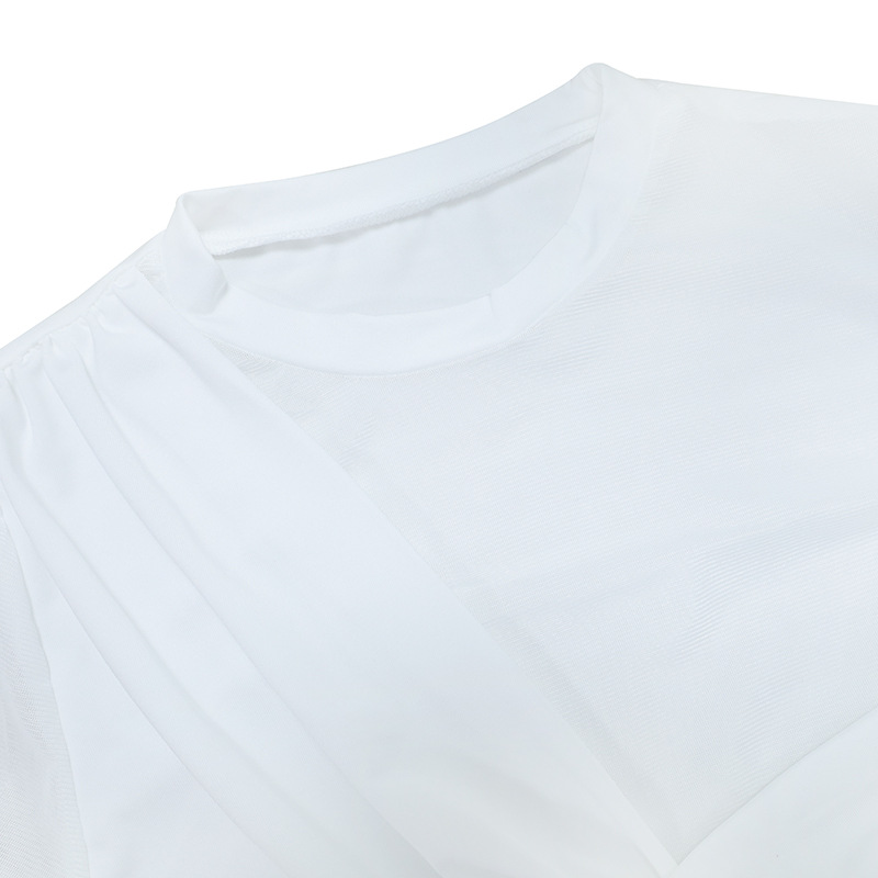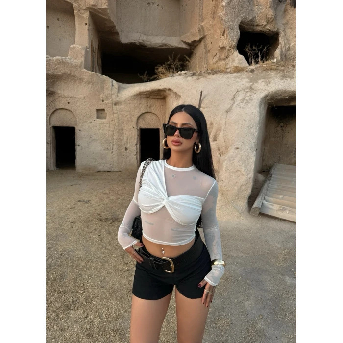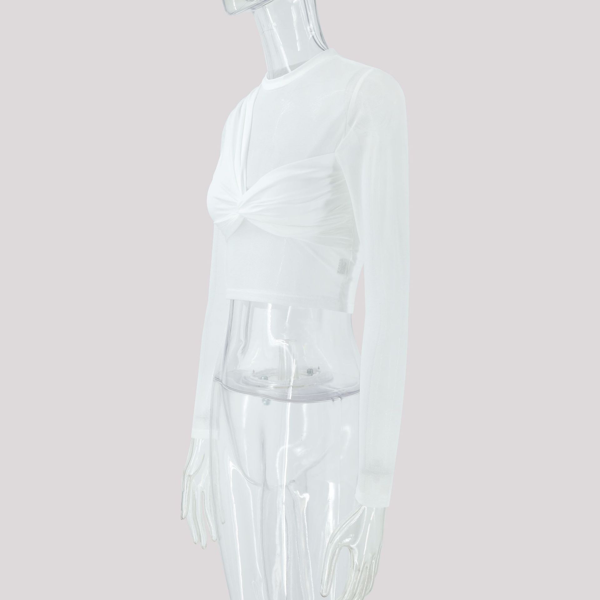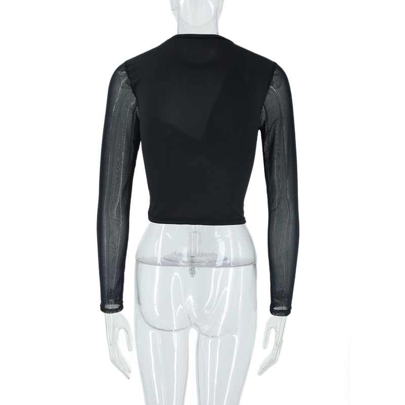 Mesh Long-sleeve Cropped Top With Patchwork Design