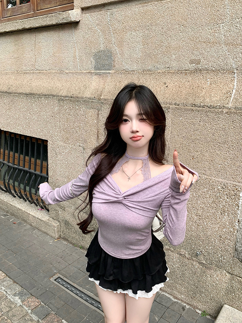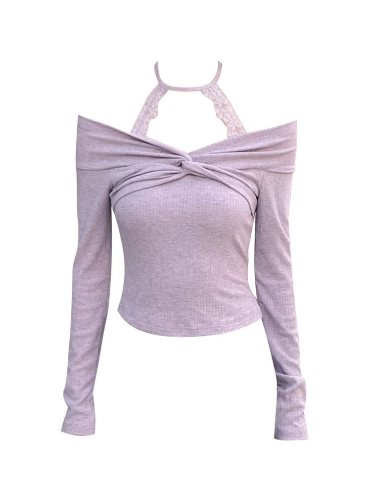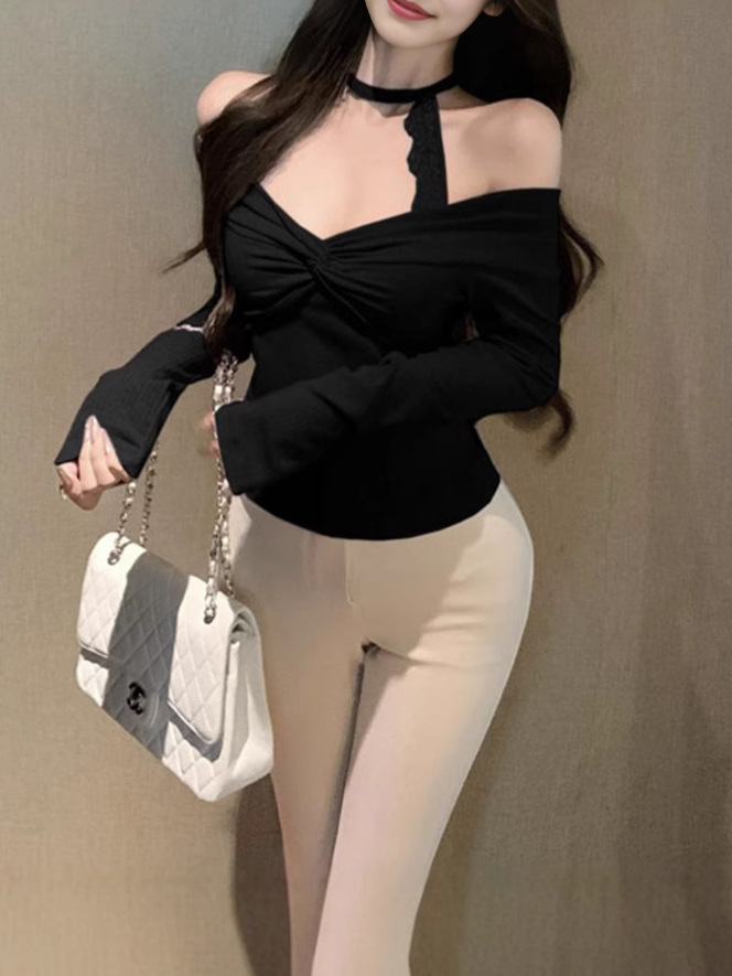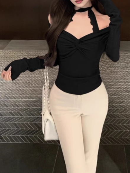 Off-shoulder Halter Knitted Bottoming Shirt For Women Short Strapless Top