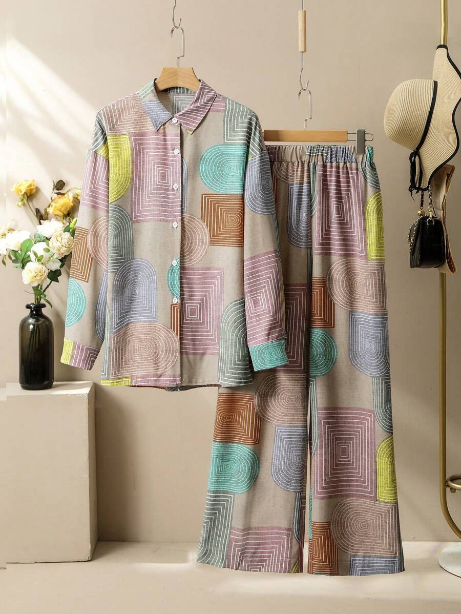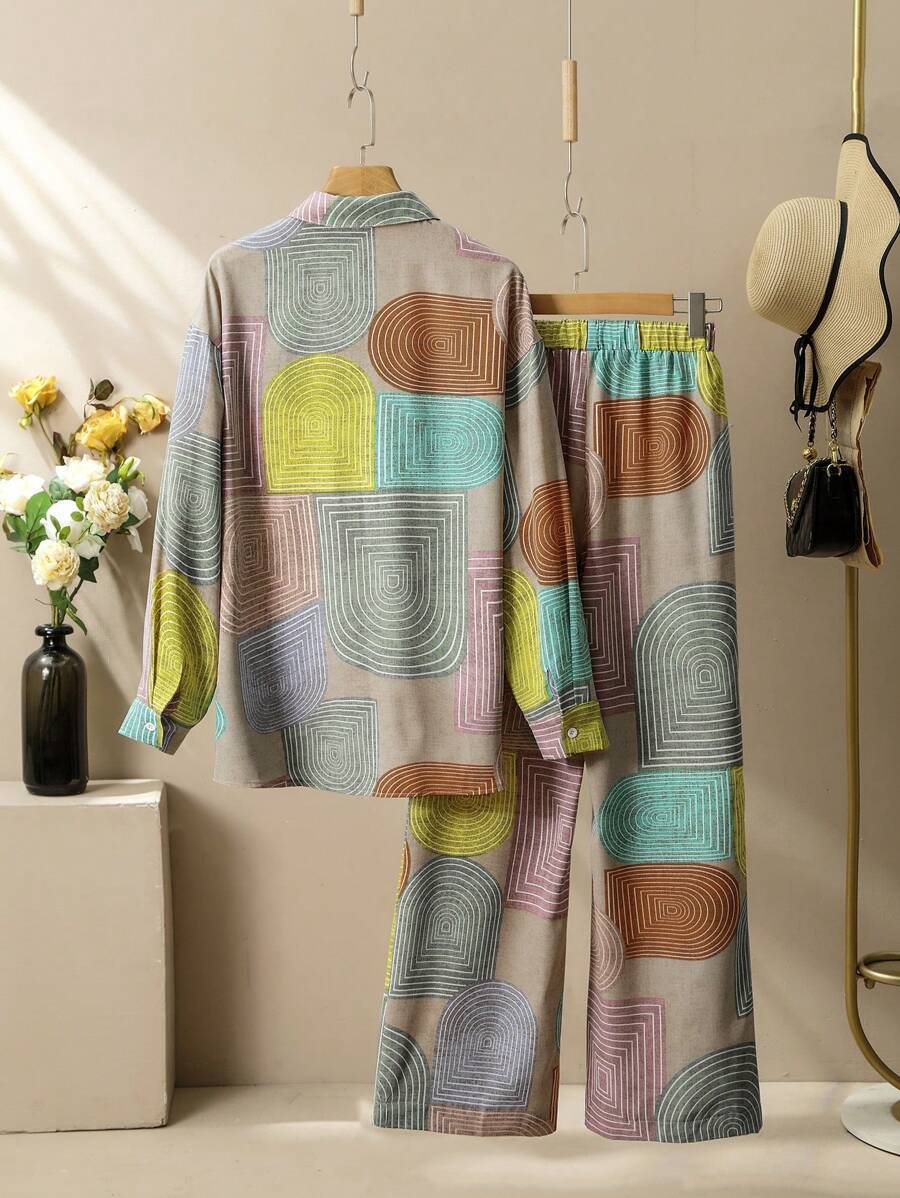 Printed Long Sleeve Trousers Suit