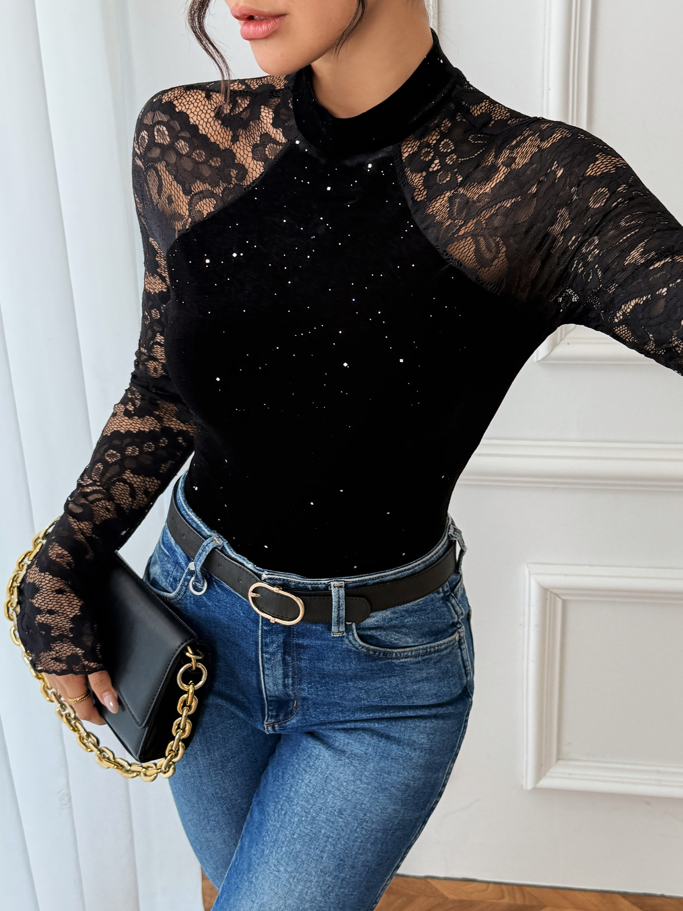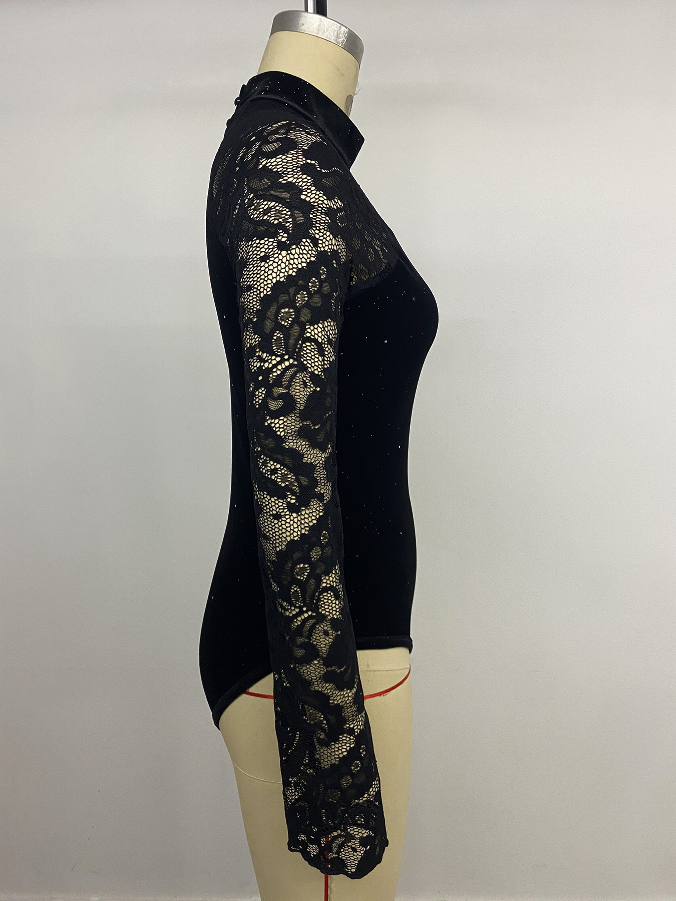 Retro-style Sexy And Elegant Half-high-neck Lace Bodysuit