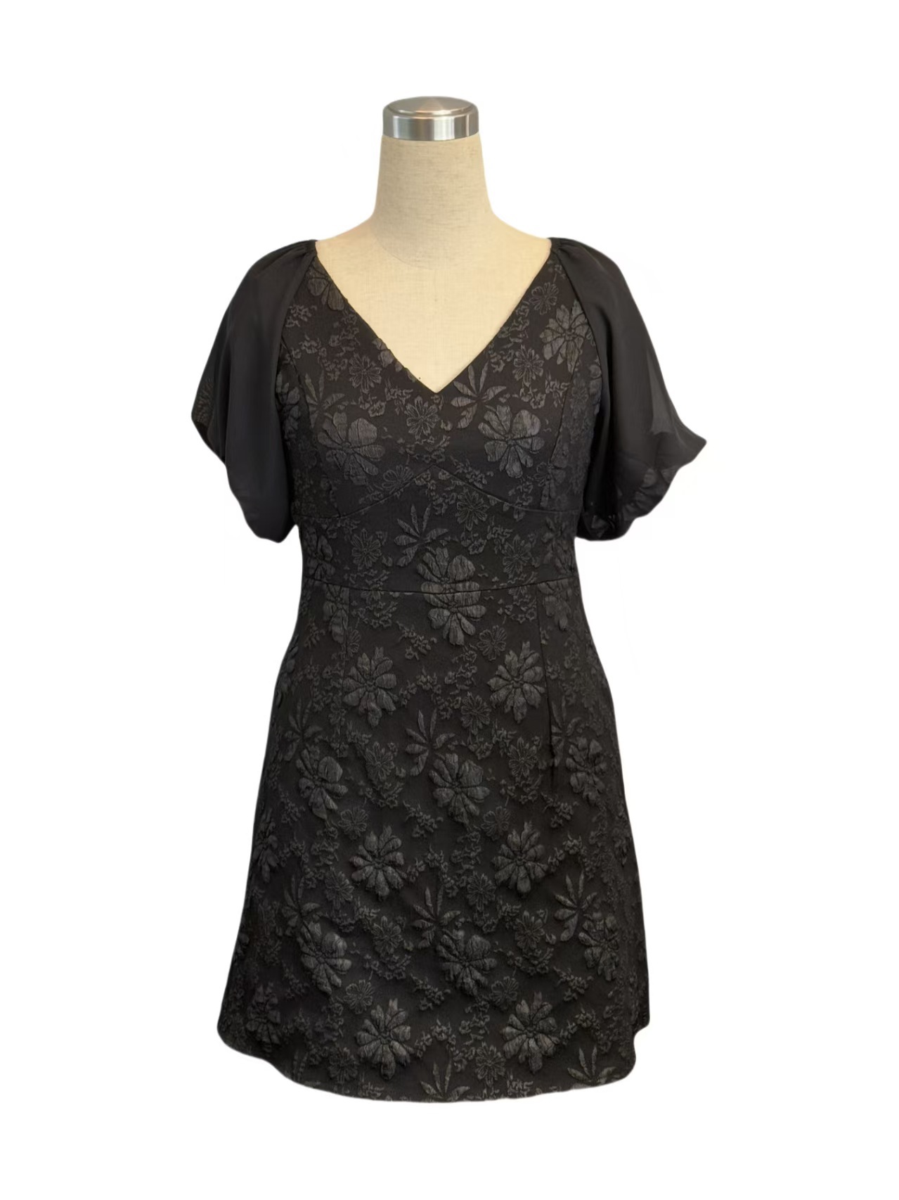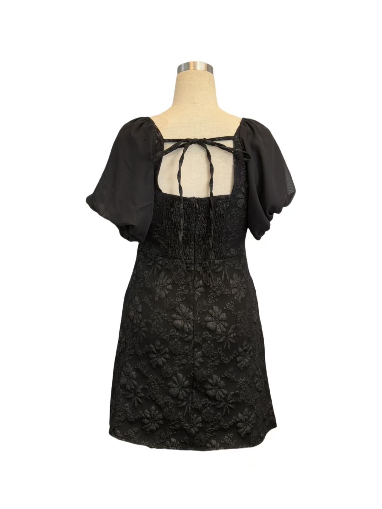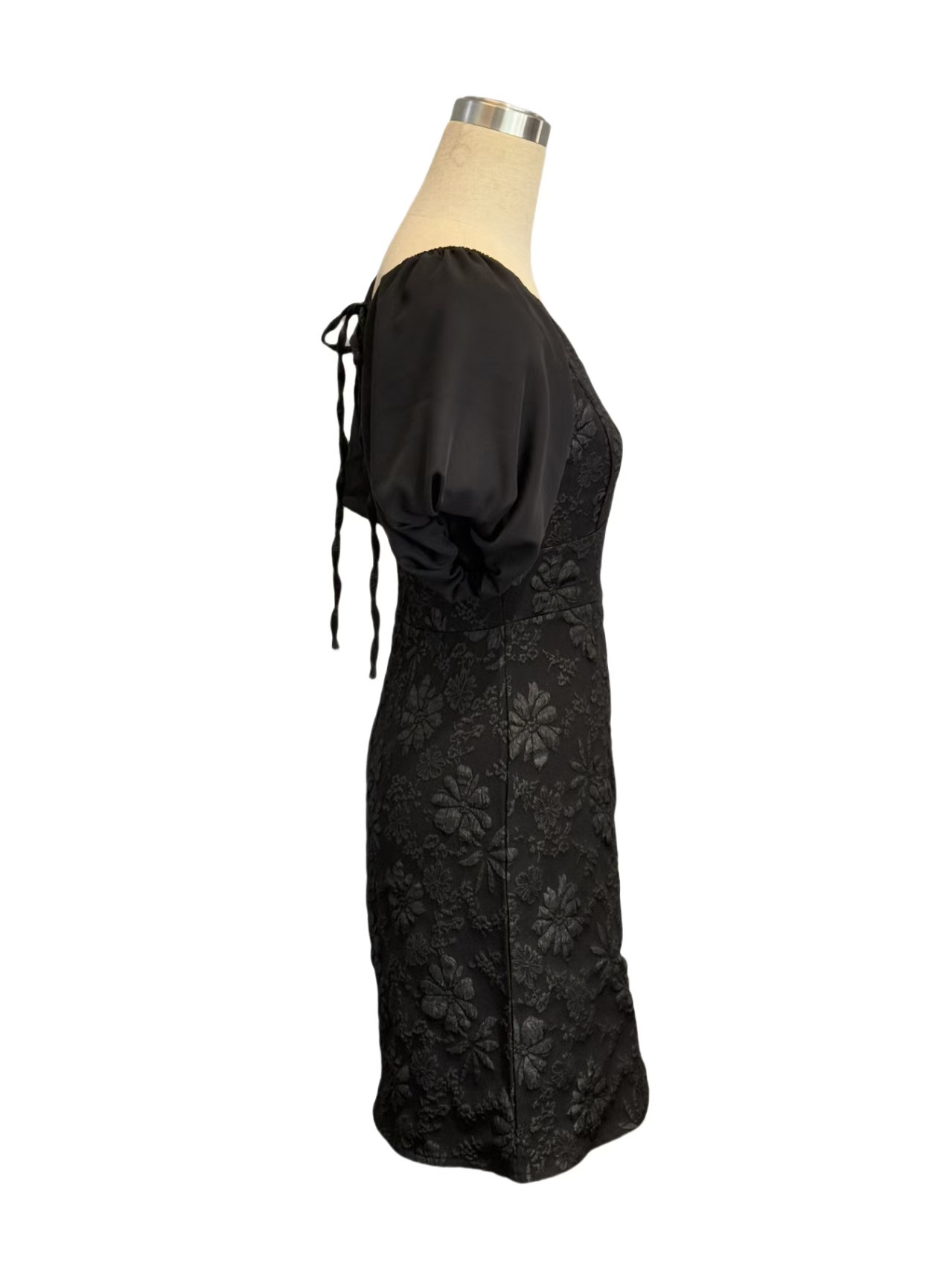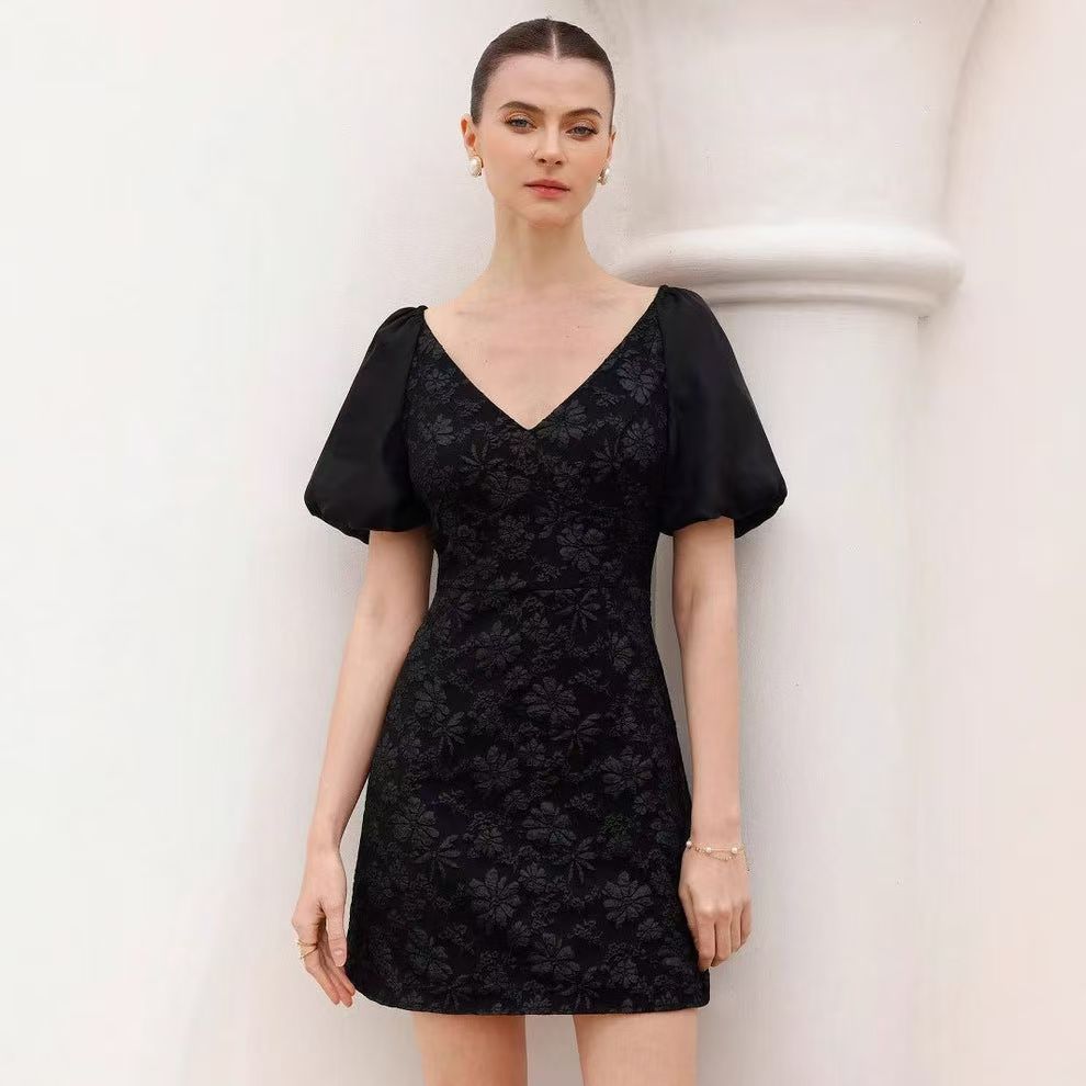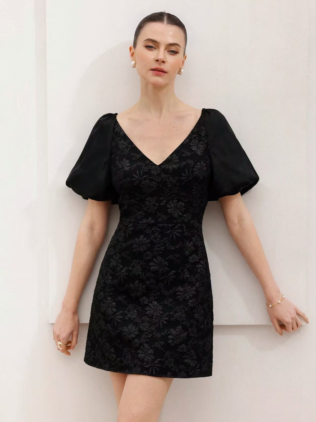 Retro Waist-Cinching Lace-Up Patchwork Pleated-Sleeve Dress