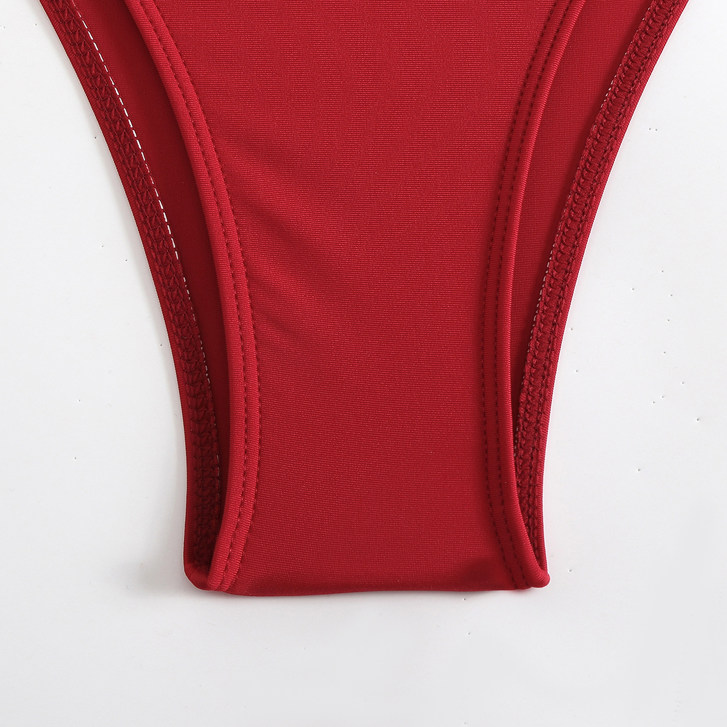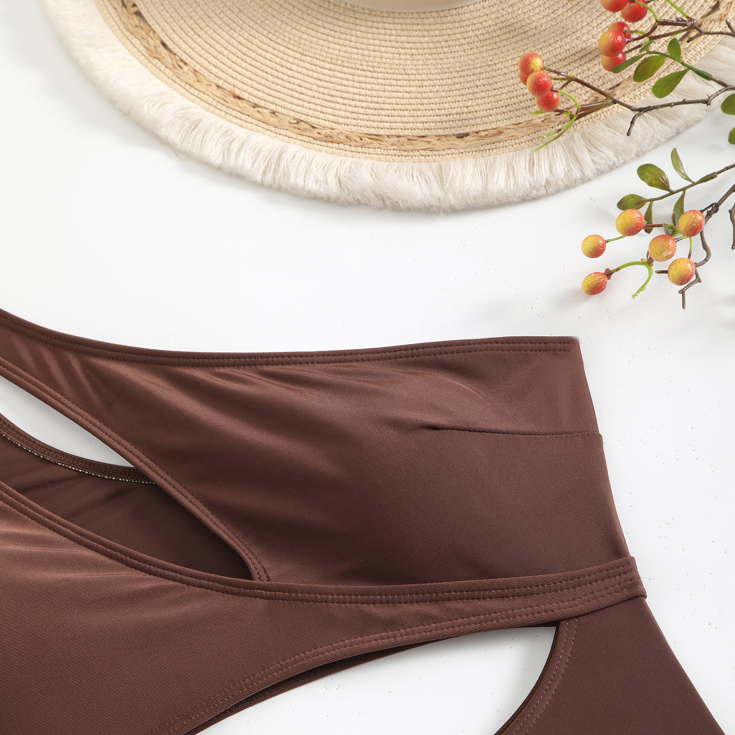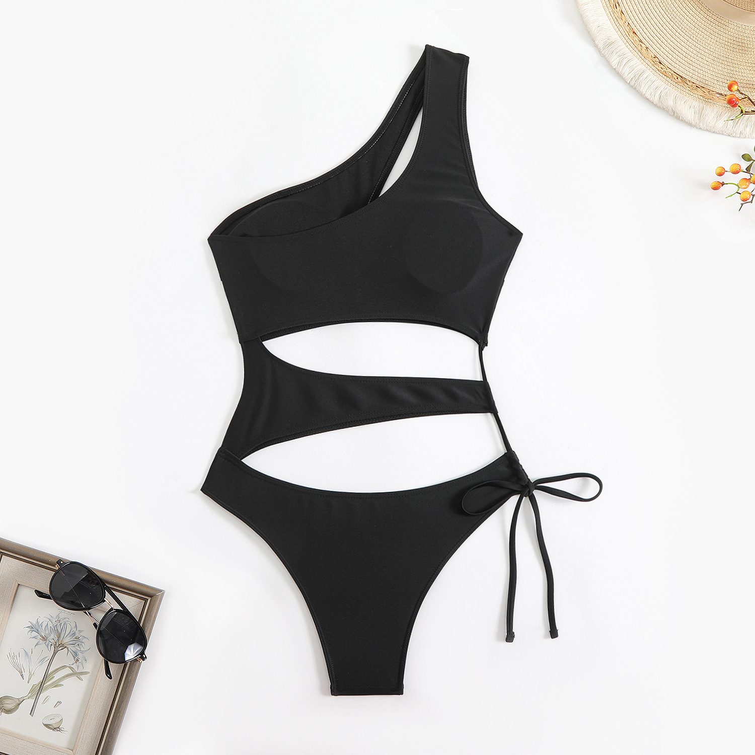 Sexy Solid Color Hollow Drawstring Strap Swimsuit Bikini