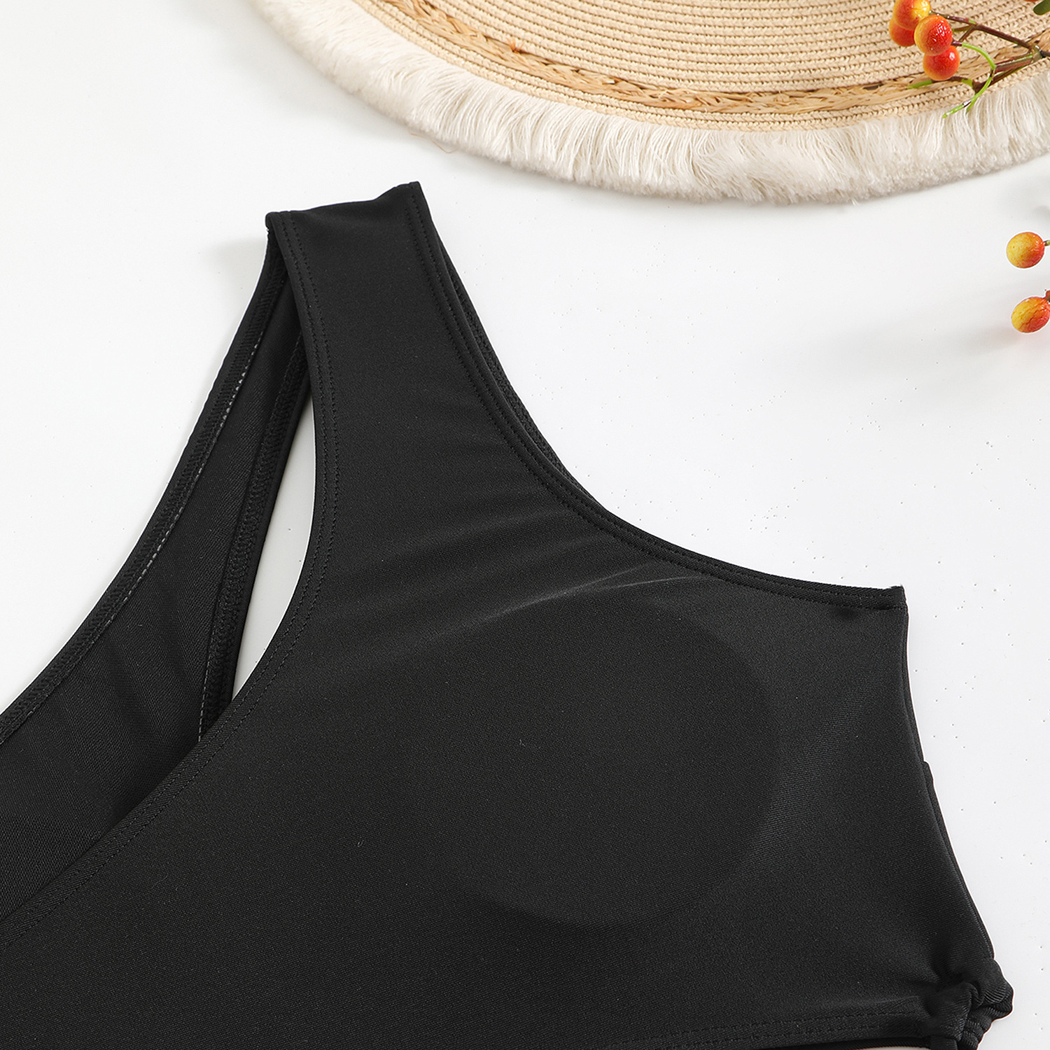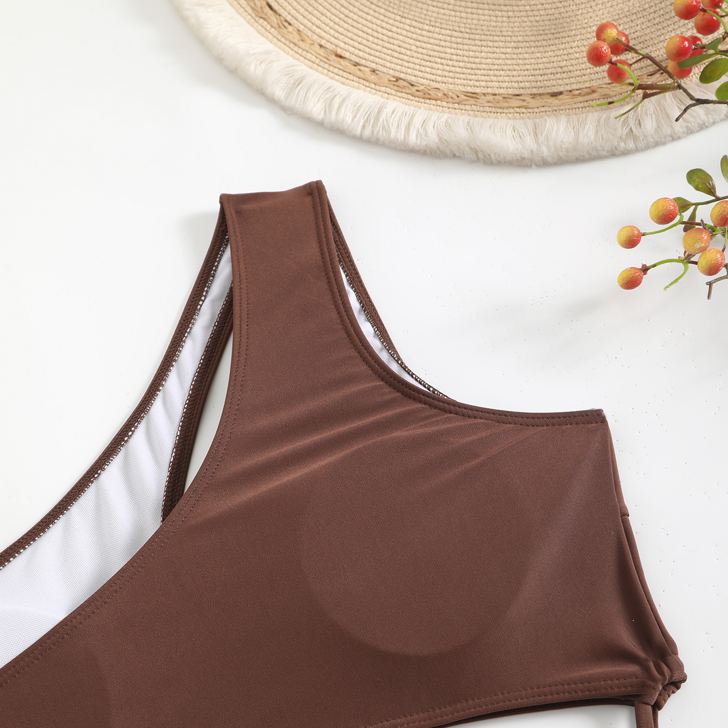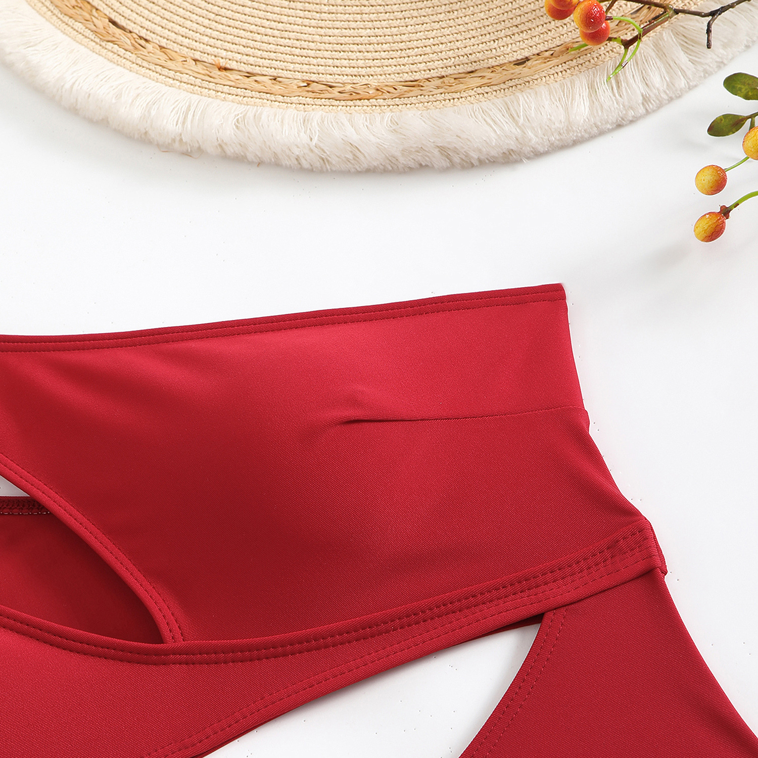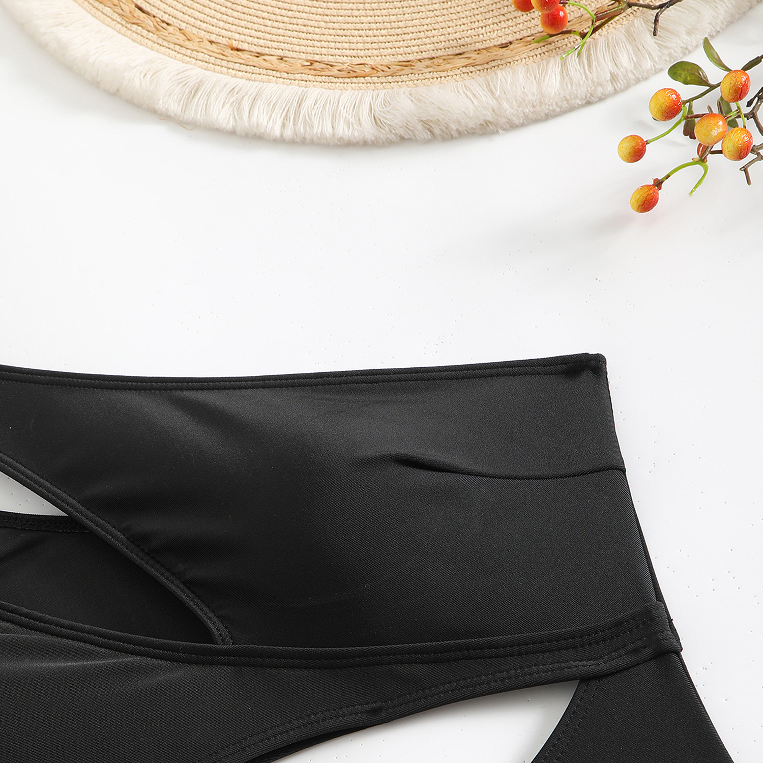 Sexy Solid Color Hollow Drawstring Strap Swimsuit Bikini