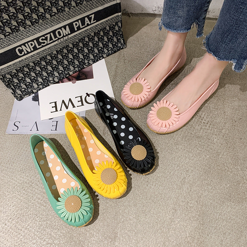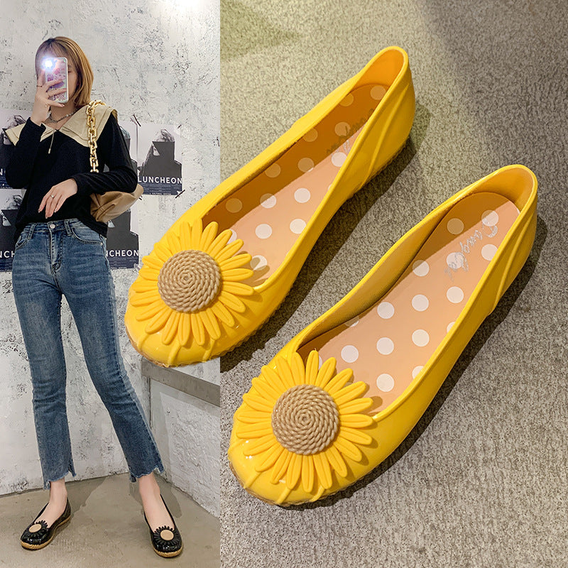 Summer Chrysanthemum Rain Boots Ladies Low-Top Water Shoes Rain Boots Non-Slip Work Fashion Slope Heel Pumps Korean Cute