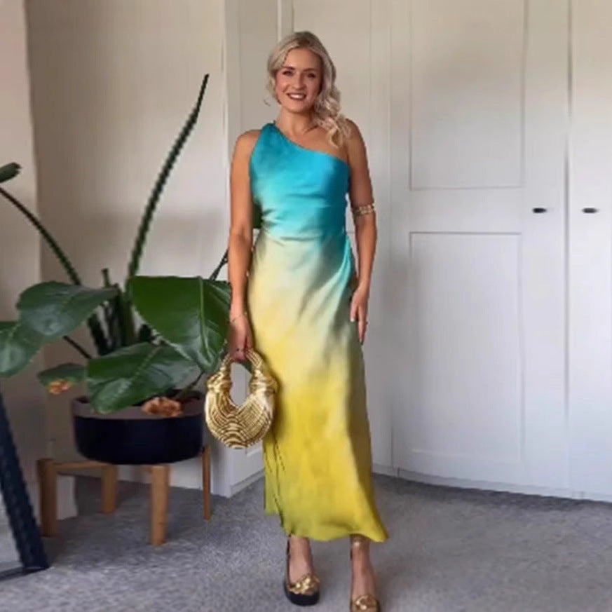Women's Asymmetric Silk Satin Texture Backless Fashion Dress
