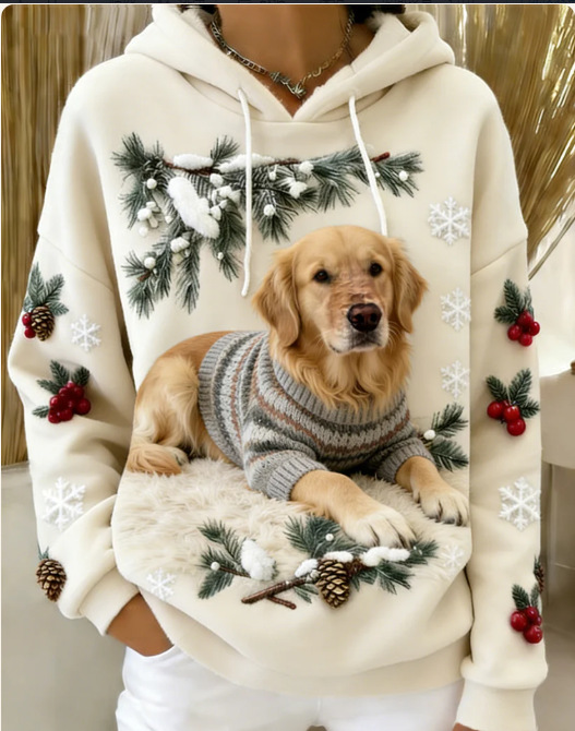 Womens Digital-Print Hoodie In Solid Color Simple Design