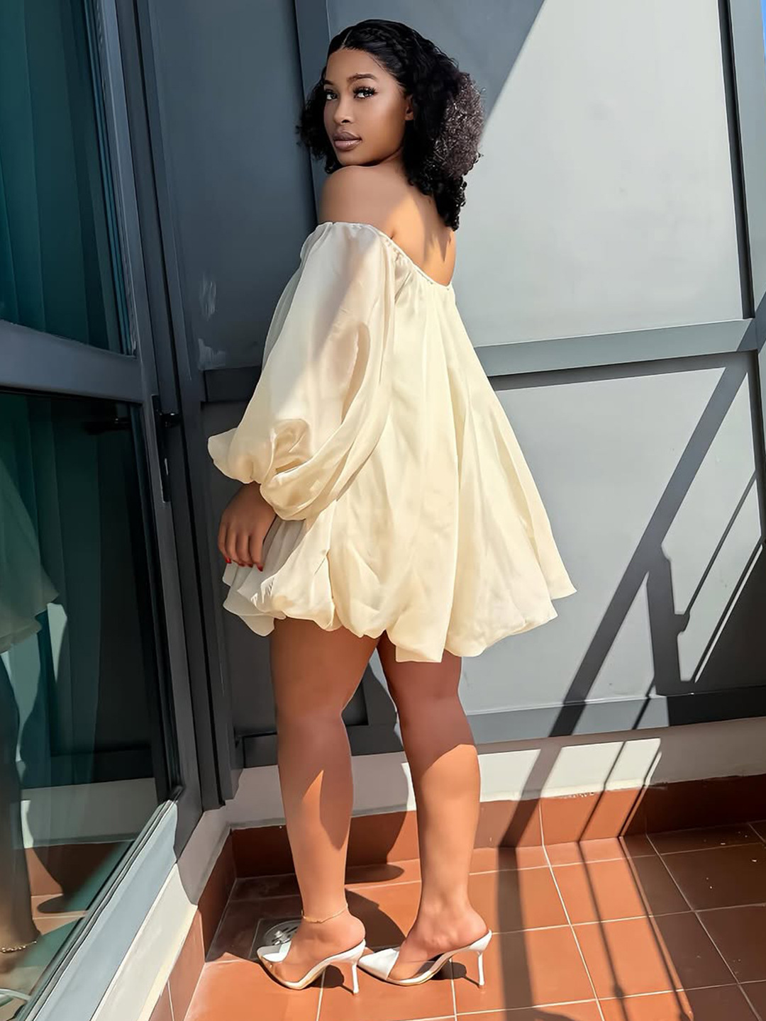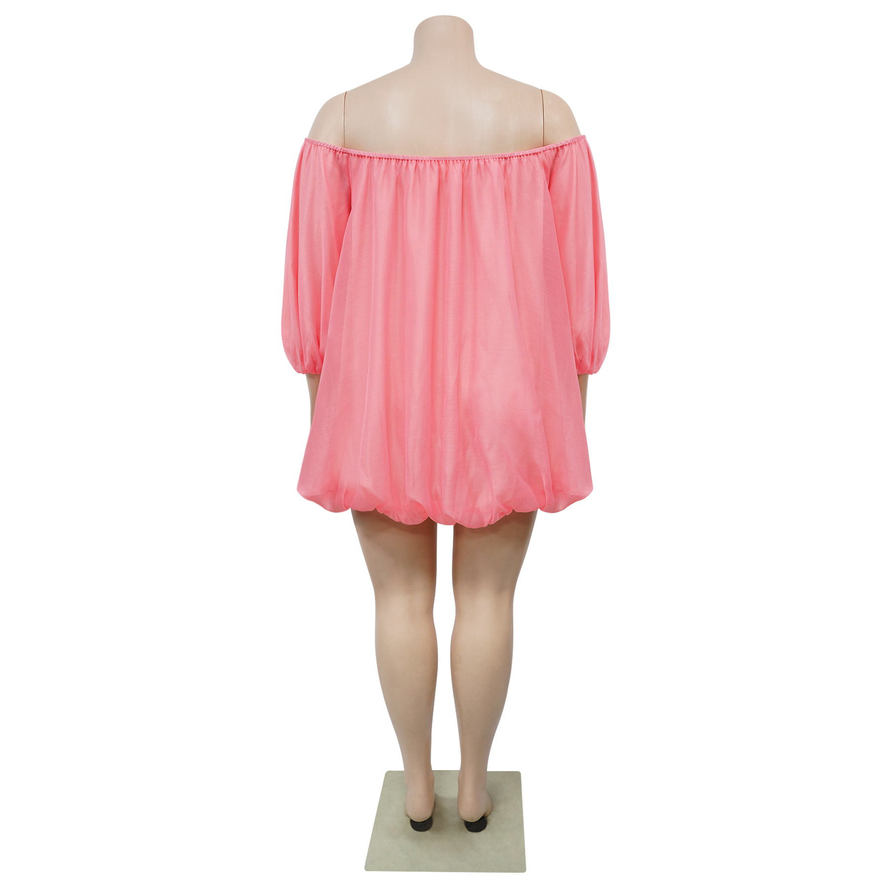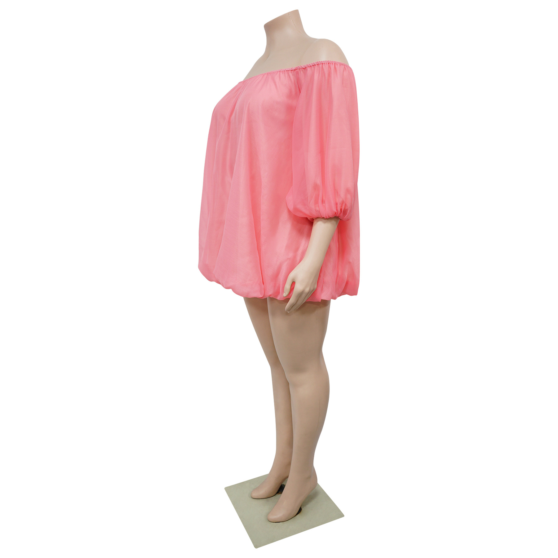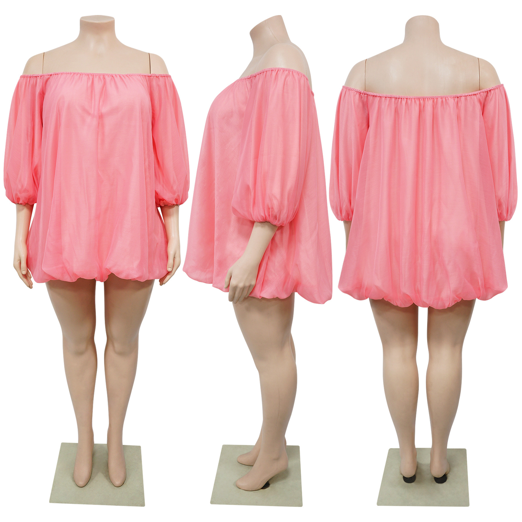 Women's Fashionable And Sexy Off-Shoulder Puff-Sleeve Dress With Boat Neck For Plus-Size Ladies