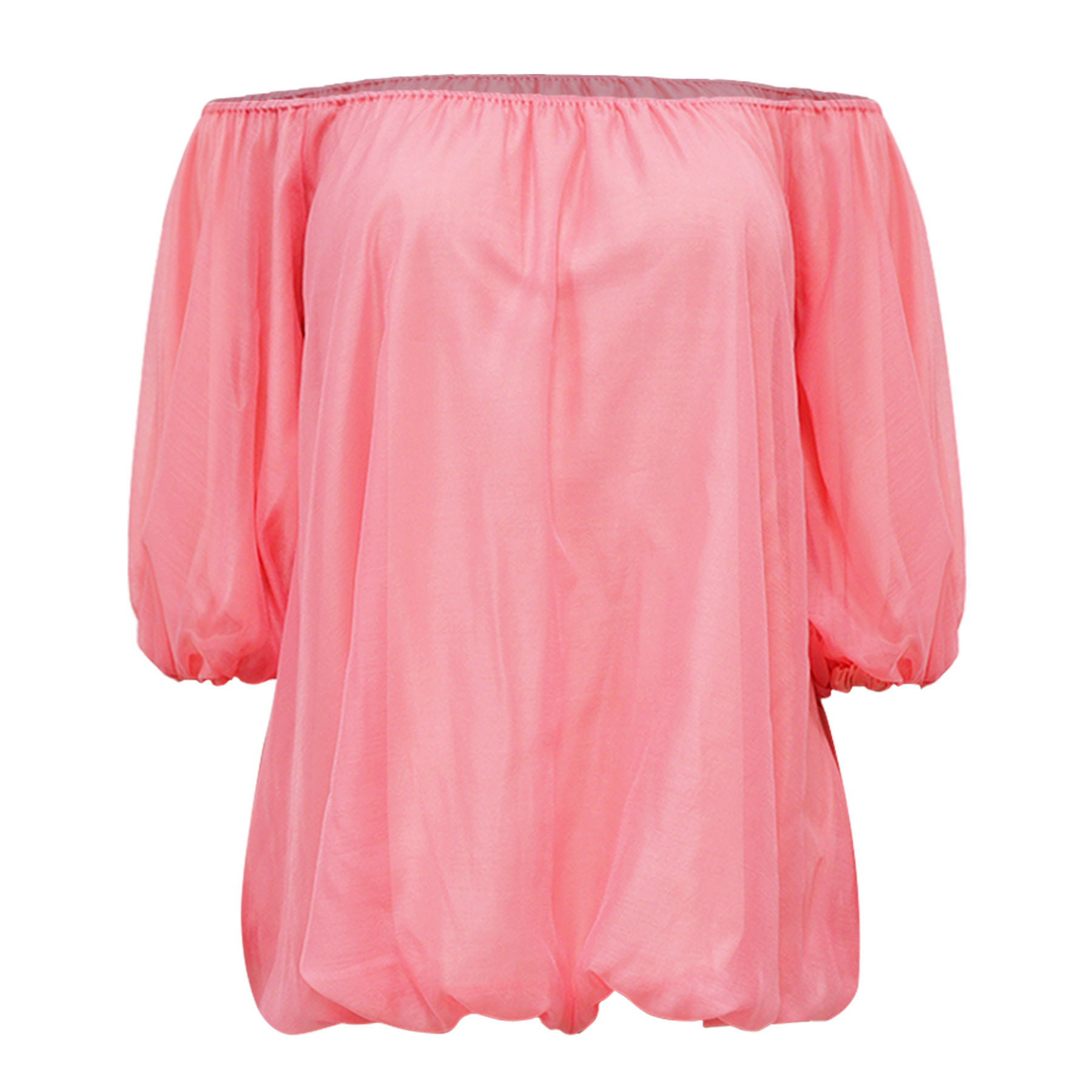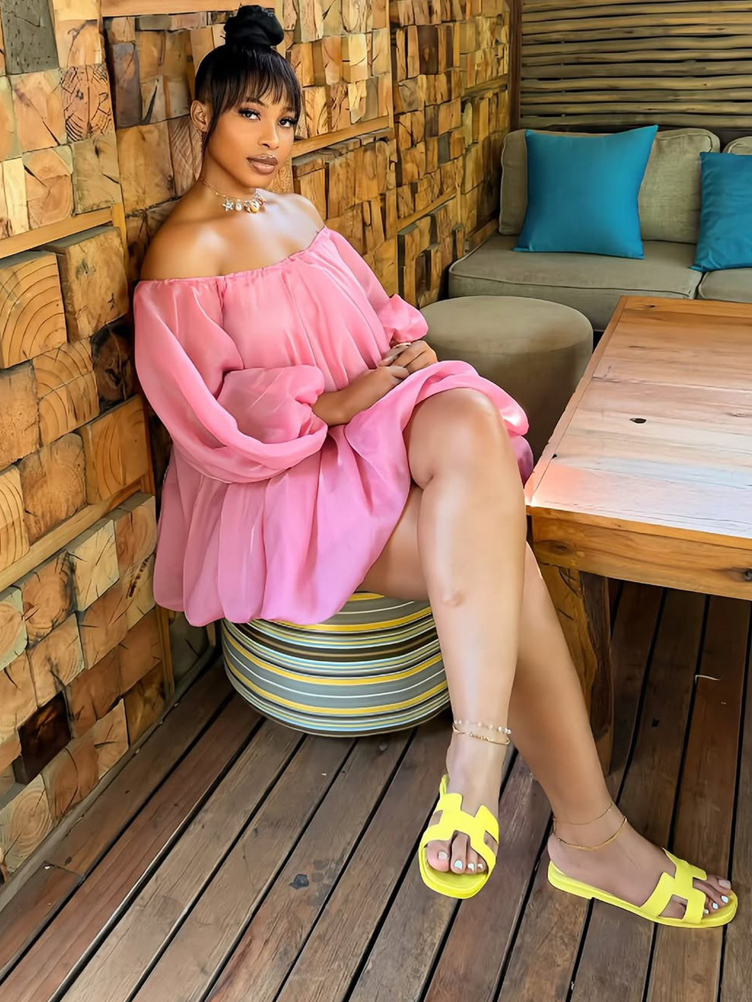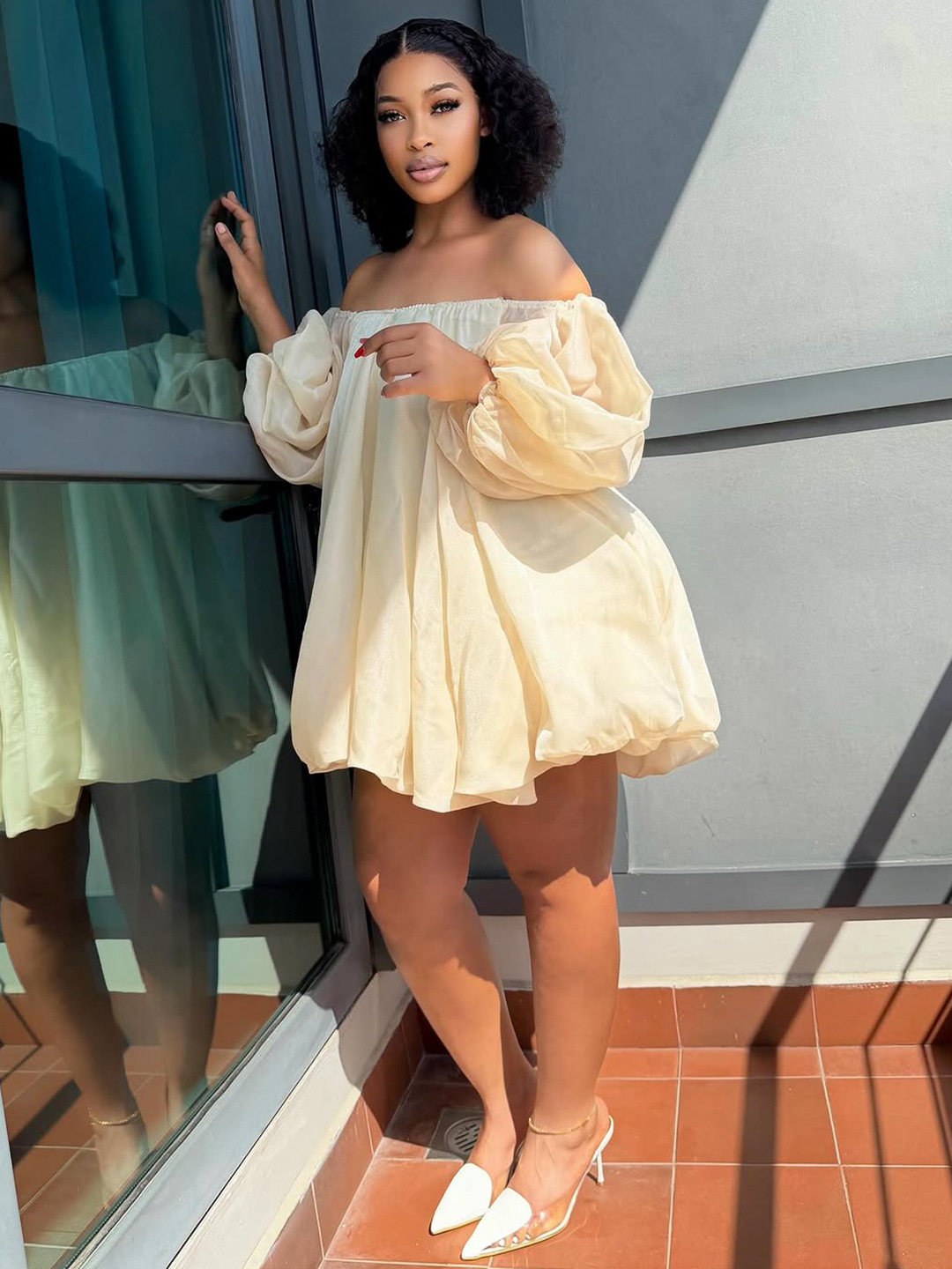 Women's Fashionable And Sexy Off-Shoulder Puff-Sleeve Dress With Boat Neck For Plus-Size Ladies