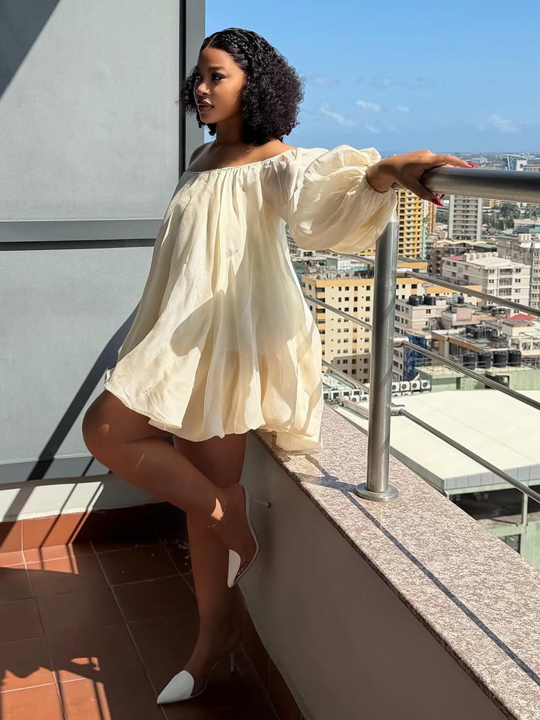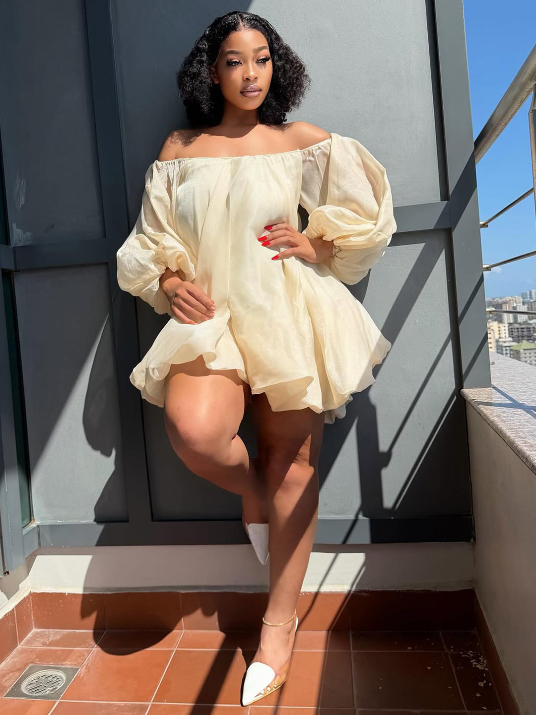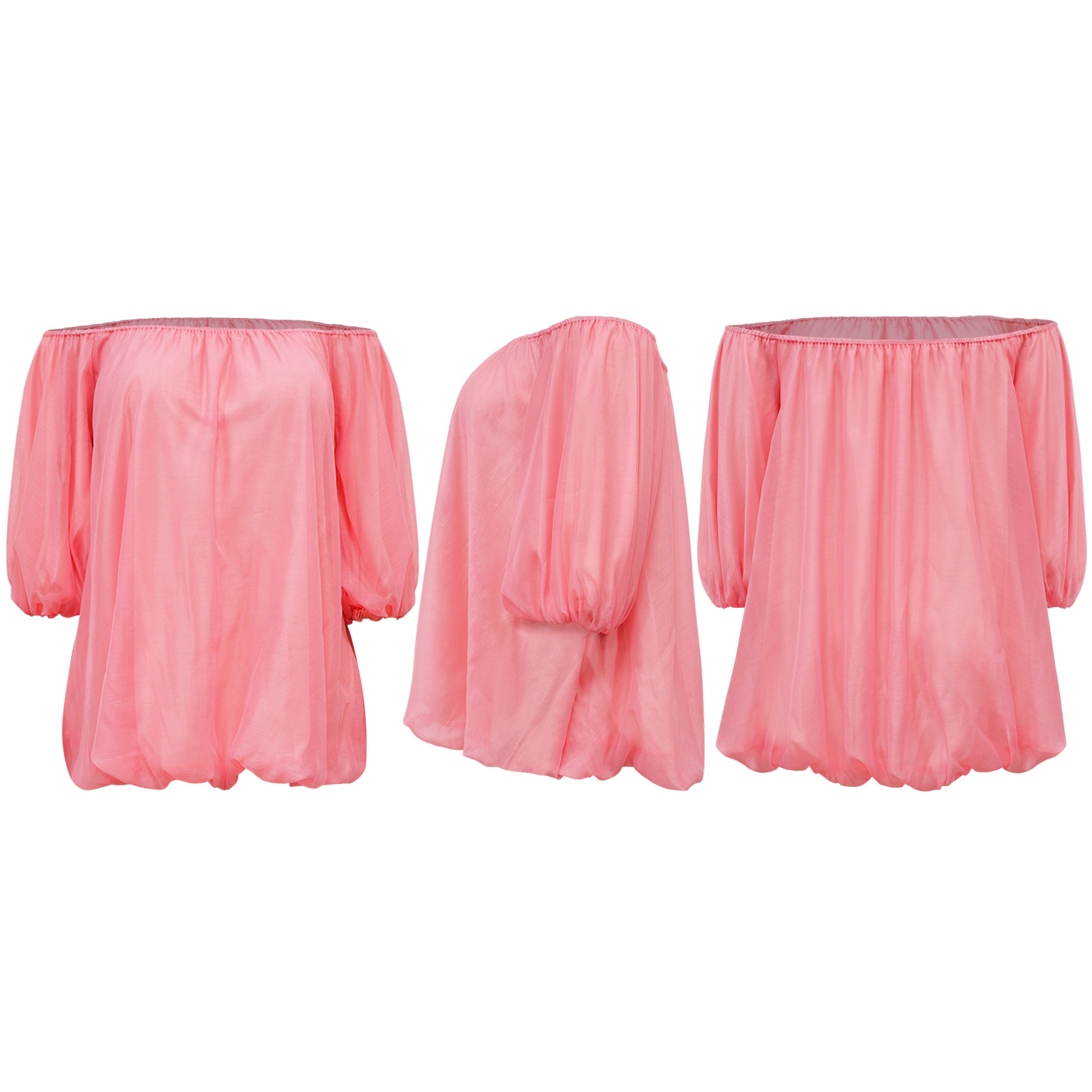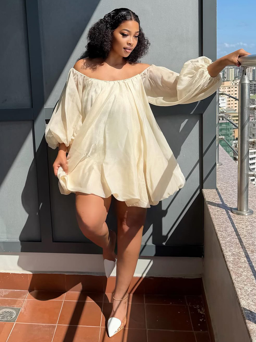 Women's Fashionable And Sexy Off-Shoulder Puff-Sleeve Dress With Boat Neck For Plus-Size Ladies