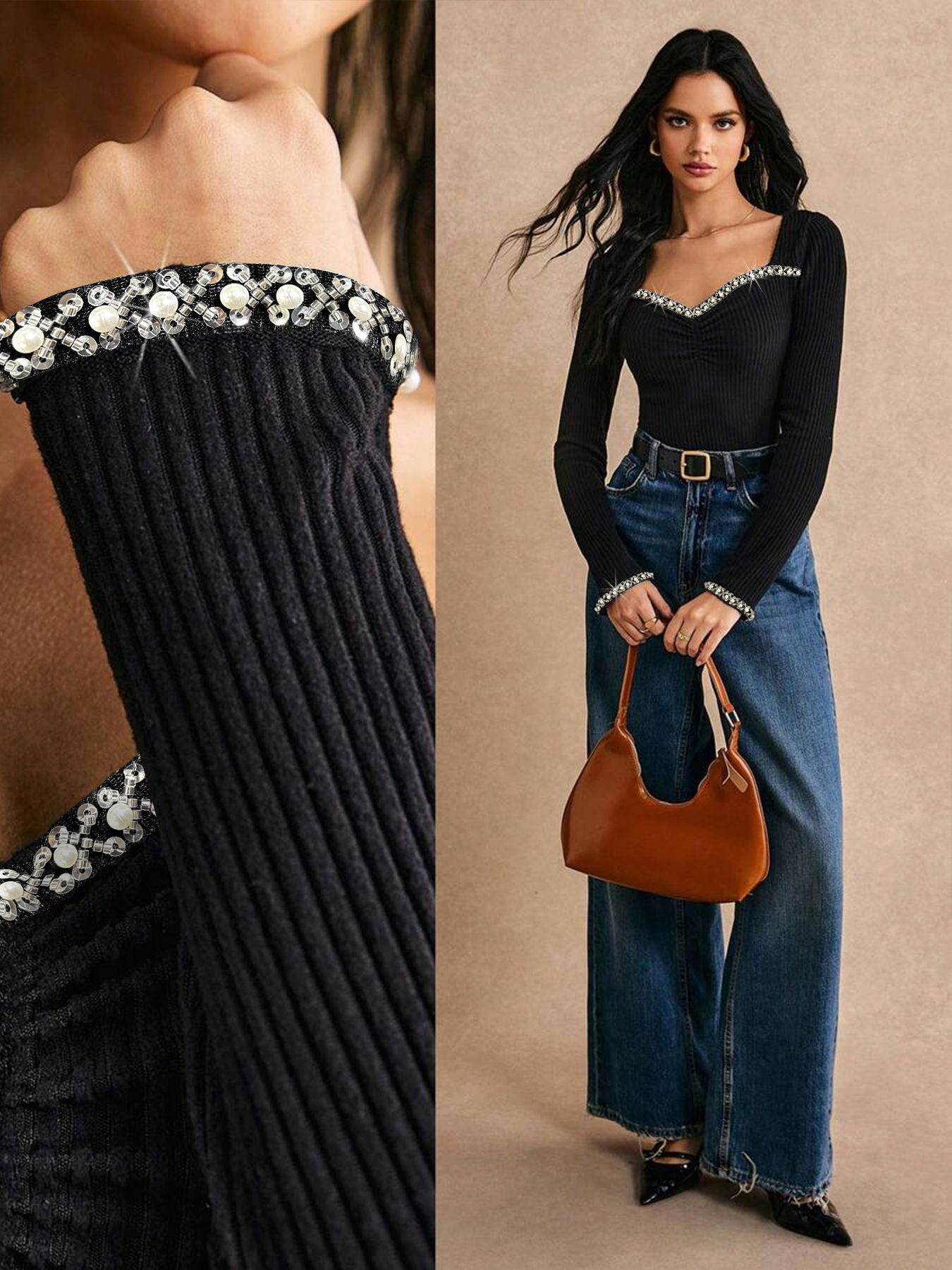 Trendy Elements: Slim-fit, hot-fix rhinestones