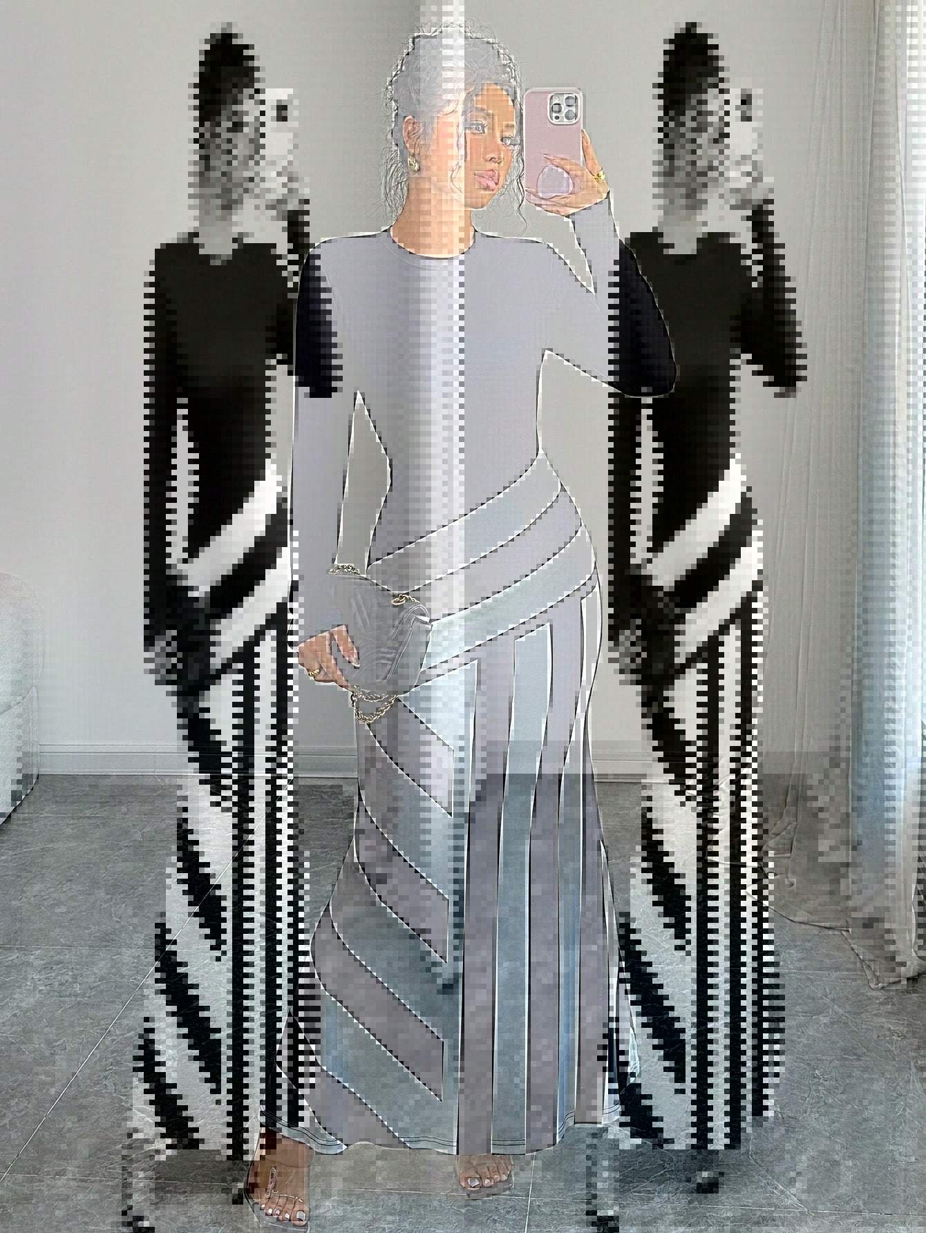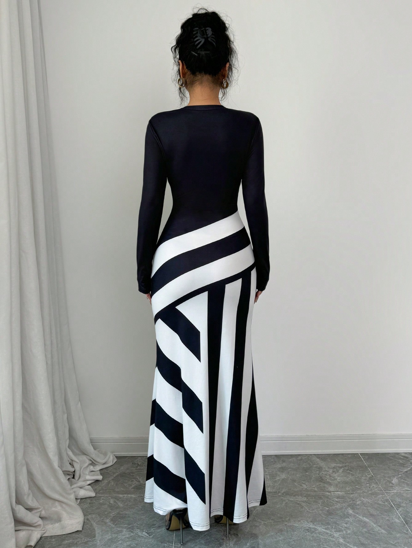 Women's Sexy Asymmetric Neckline Irregular Stripes Dress